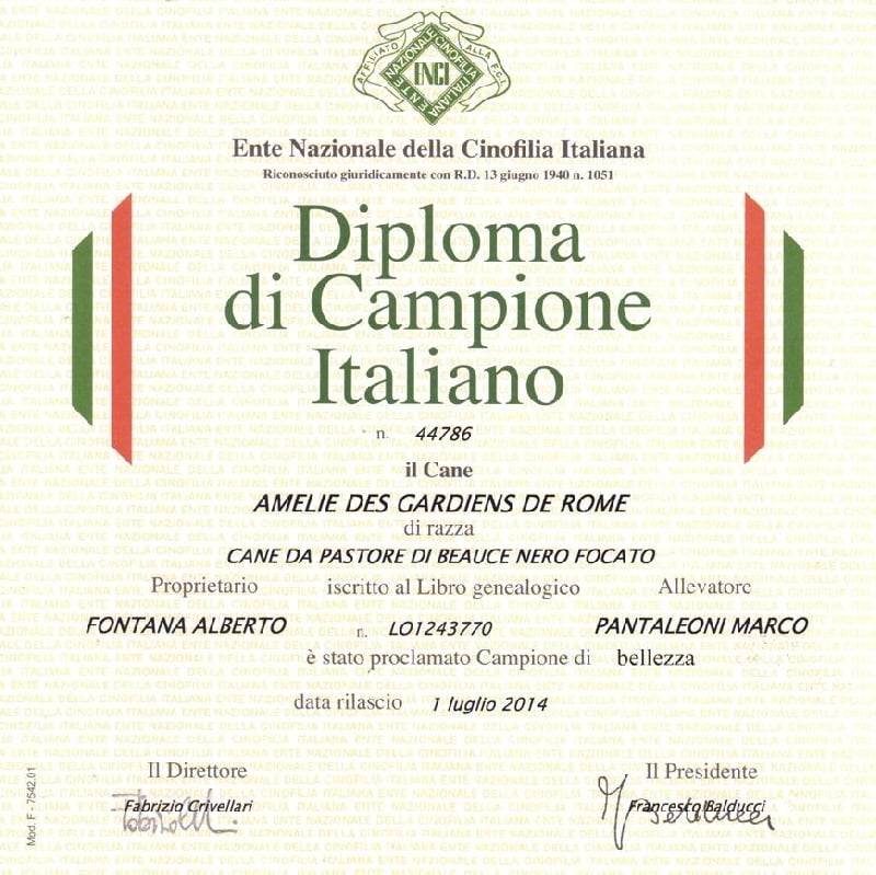 Chien Berger de Beauce CH. Amelie Des Gardiens De Rome