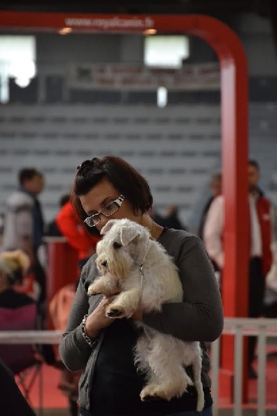 Les commentaires du juge ne sont pas objectif pusqu il n aime les blancs et m a dit que ma chienne etait une BATARDE ( mouhahah oui oui cela me fait rire d ou cette photo prise en sortant du ring)Manque d assurance ( elle a 8 mois )DCC Tete feminine crane plat bon chanfreinoeil foncé bonne attache d oreillebelle encolure dos bien tendupoitrine juste bonnes epaulesbonnes angulationscogne de l'arriere, port de fouet timide, doit se souder dans l avant main