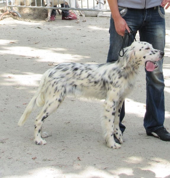 DCC, dans le type, chien inscrit dans un rectangle Exc tête, oeil et oreilleBelle sortie d'encolure Exc dessus, arrière main un peu avalée La poitrine pourrait être plus descendue Bonne ossature, bonne démarche