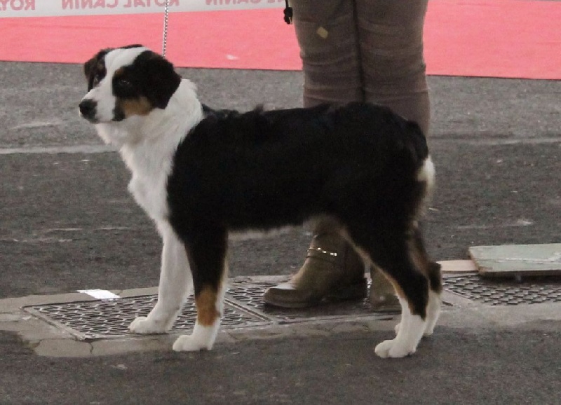 50cm Dentition complète en ciseauxExcellent type en comportement et ossature Tricolore en muetête féminine et expressive qui devrai prendre de l'ampleur Excellent dessus, la poitrine devrait prendre du volume Aplombs parallèles encore un peu serrés devant excellentes angulations et pieds excellente démarche. Allures correctes