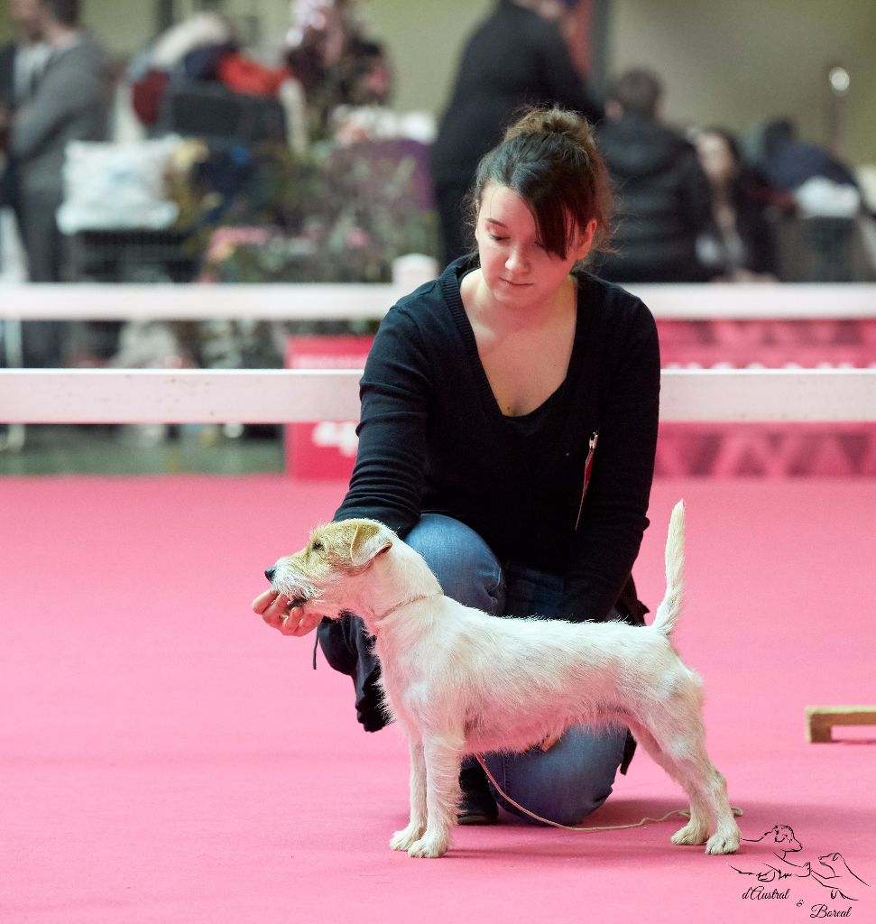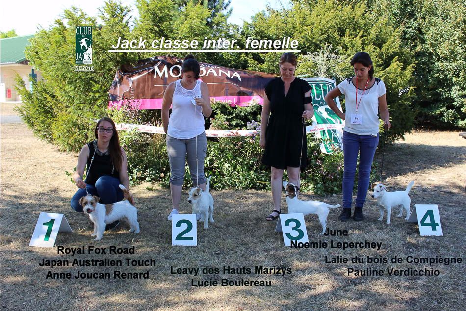 CLASSE INTERMEDIAIRE FEMELLE. Très Bonne occlusion Taille 28,5cm Poitrine 39cm. Excellente tête bien proportionnée. Très Bon oeil forme et couleur. Oreilles bien portées. Excellente encolure et dessus, attache de fouet. Excellente avant main. Epaule oblique. Poitrine bien descendue. Aplombs corrects, bons mouvements. 1er Excellent, CACS et Meilleure de Race