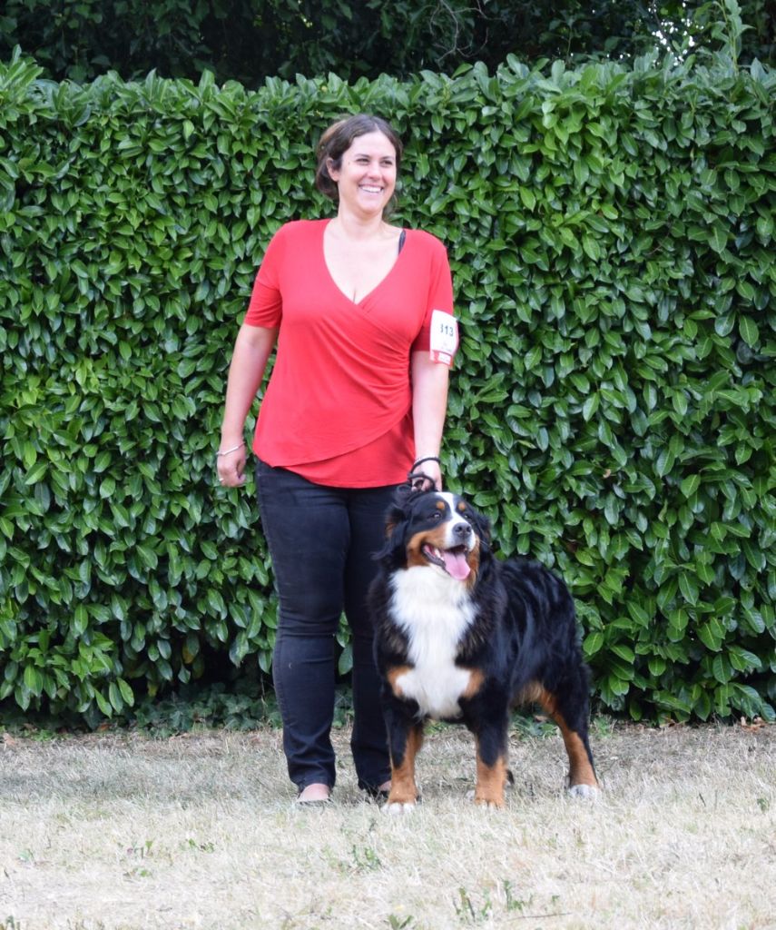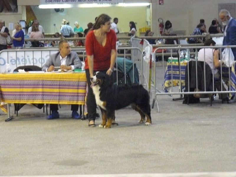 DCC. Jolie tête féminine, exc ?il forme et couleur. TB oreilles bien portées. TB marquage. TB proportions, dos bien tendu. TB croupe, exc poitrine, TB aplombs TB angulés, TB ossature. TB mouvement et allures, TB tempérament.Ma puce fait Meilleure Baby Bernois puis sur le ring d'honneur termine Meilleure Baby de l'exposition, toutes races confondues !!!
