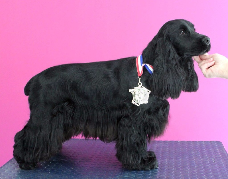Une petite perle noire en fait Je rêvais d'avoir à nouveau une chienne noire qui me correspondrait, chez qui je retrouverais tout ce que j'aime tant dans cette couleur : la beauté, l'élégance, la personnalité bien marquée, un regard expressif particulier qui n'appartient qu'aux cockers noirs (pour moi ;) ), une belle charpente et une belle morphologie... Et je termine par la tête qui doit montrer beaucoup de noblesse!
