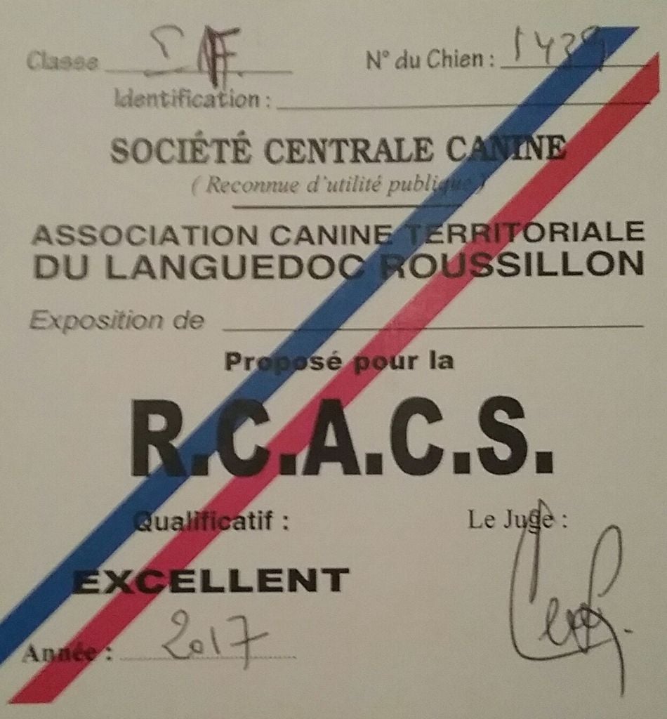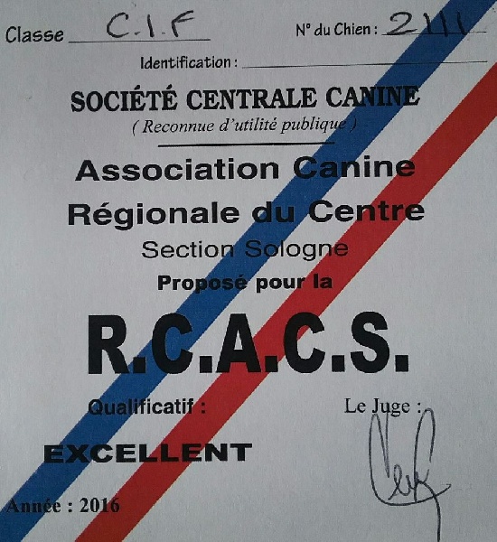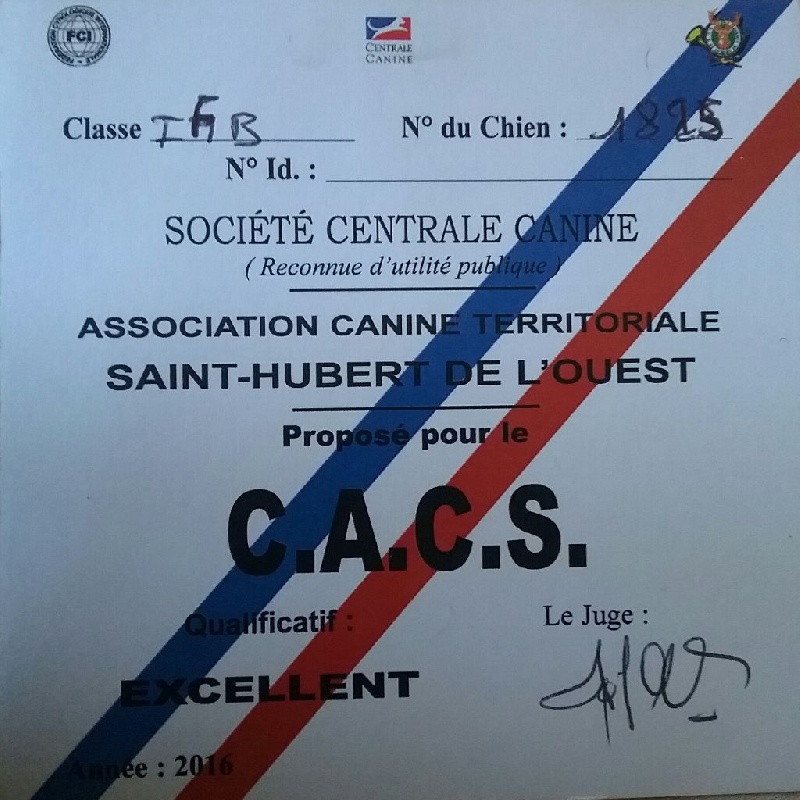 - 1er EXCELLENT - CACS - RCACIB - CLASSE INTERMÉDIAIRE