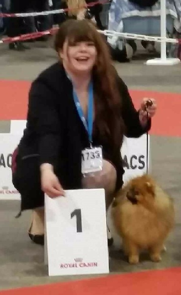 Denture correct, typé poméranien.Oreilles correctes pour l'âge.Corps bien proportionnée et bien construit.Bonne ossature, bons aplombs et angulations.Bonne fourrure, bon fouet et joli mouvement.