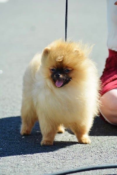 Ossature bien large, fourrure extraordinairement opulente. Museau bien poméranien avec déjà un stop bien marqué depuis très jeune. C'est l'exemple type d'un poméranien.