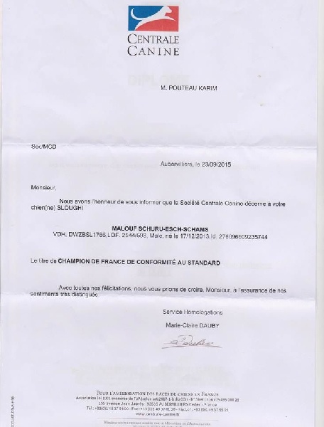 CHAMPIONNAT DE FRANCE Champion 1EXC CACIB BOB