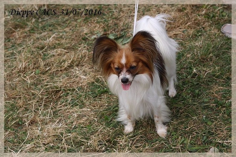 Très belle tête ,exc dentition, liste présente en tête, très bonne nature de poils, couleurs bien réparties, oreilles bien insérées, très bonnes forme de pieds + forme de poitrine , bonne démarche , queue bien portée croise un peu de l'avant