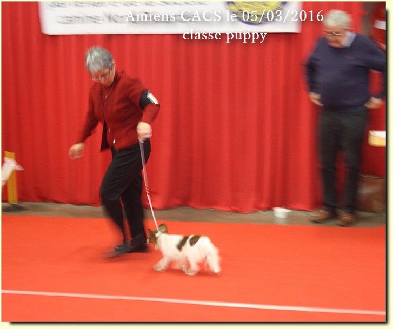 bon type tête correcte, B encolure et ligne de dos,mvt tricote en avant excellent poils manque un peu de confiance en caractère.