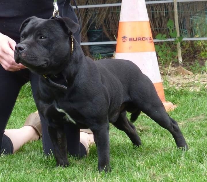 male staffie pur noir super pedigree 12 champions sur 15 chiens au pedigree .....