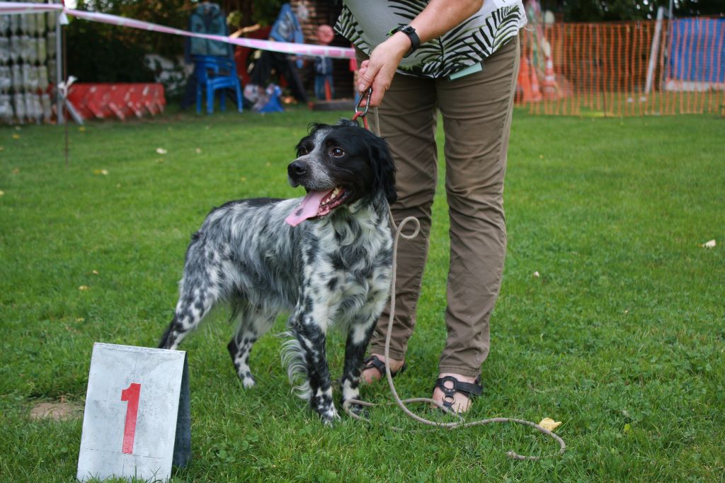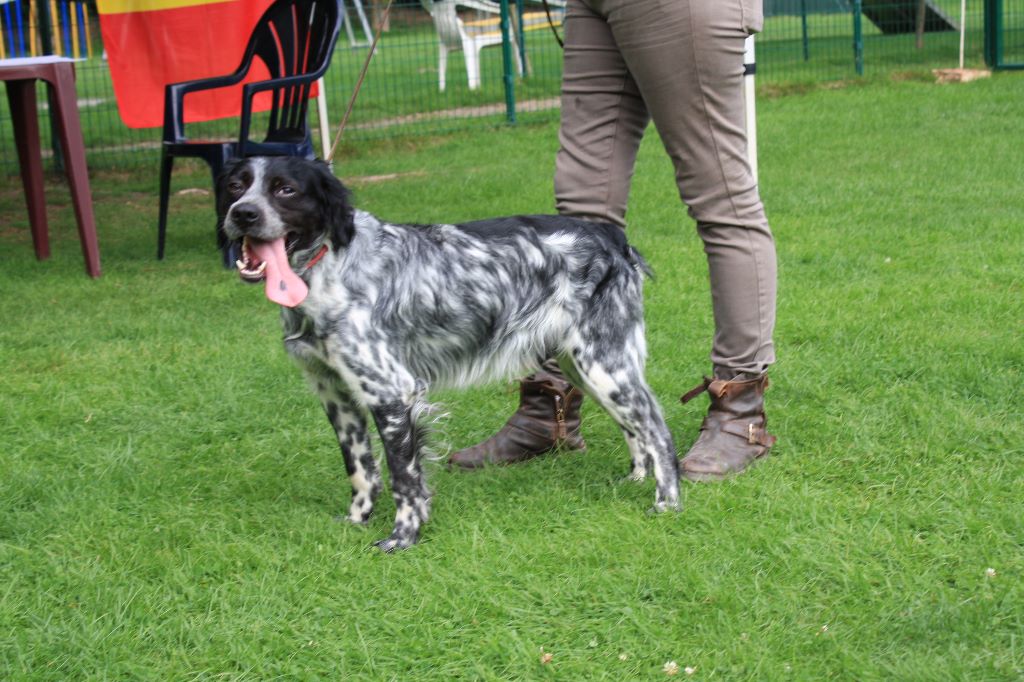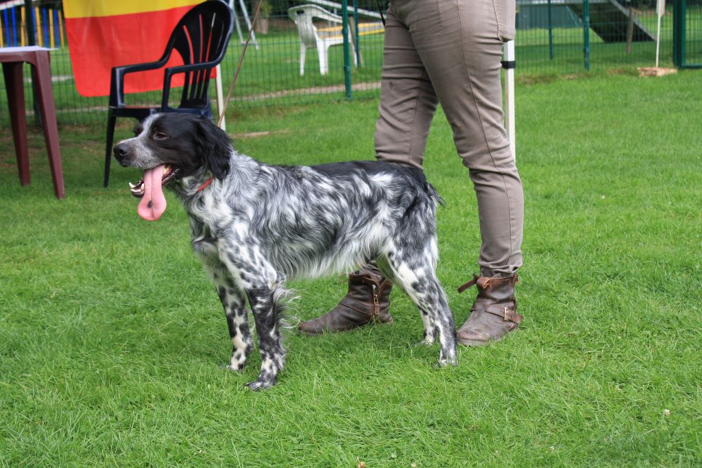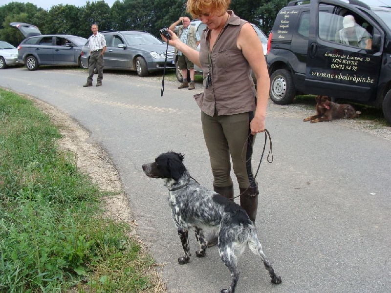 2e Excellent : Nero du Bois de Buisseret, Epagneul Breton propriétaire et conductrice Muriel Vermeer (B). Dans un vent tournant, prend un excellent point servi puis perd le sens du terrain à cause de l?absence de vent.