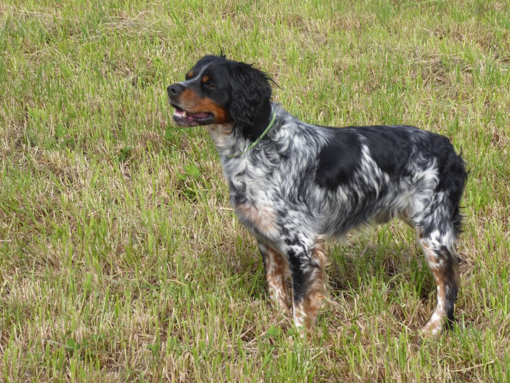 49,5cm,DCC,tricolore avec des feux suffisants et bien marqués. Excellent modèle d une construction harmonieuse,excellente tête bien bretonne,excellentes attache et port d oreilles.Excellentes ligne de dos et poitrine, rein court et puissant. Aplombs fermes angulations typiques de la race. Sujet COB, démarche correcte