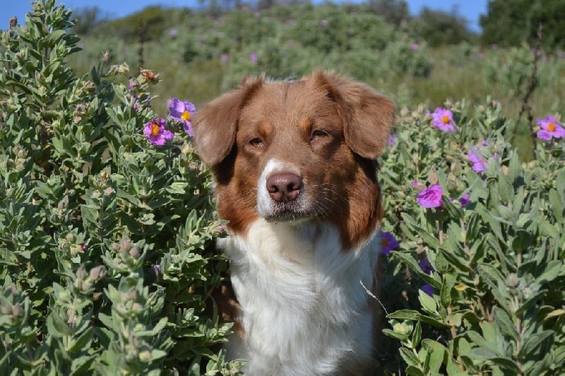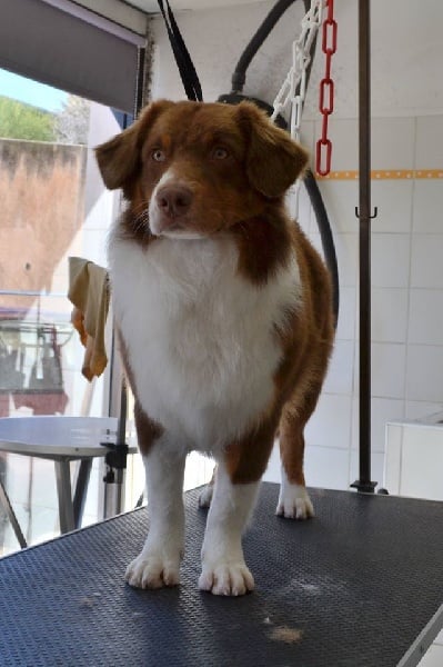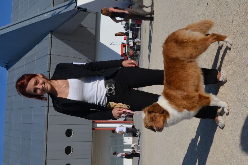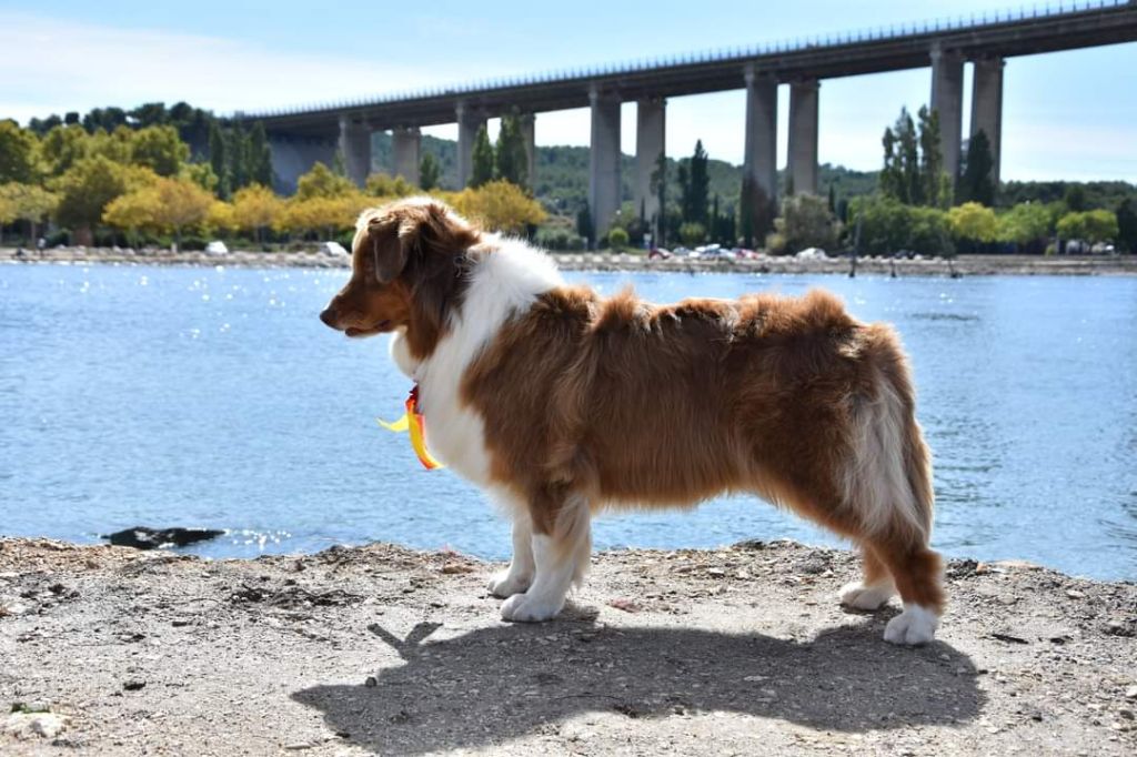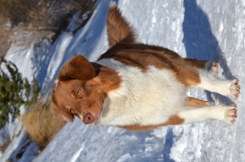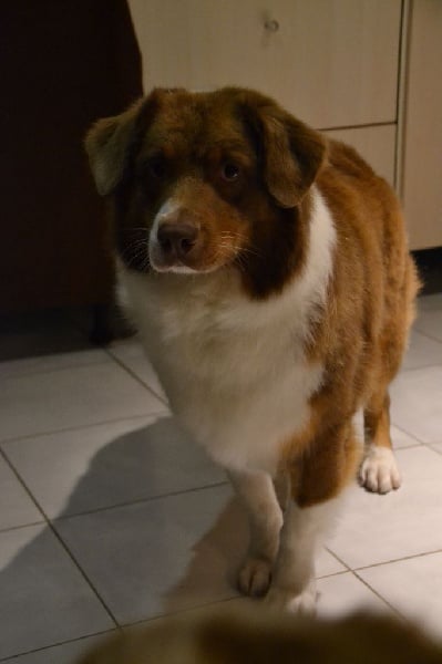 Maya est ma première chienne, celle que j'ai toujours attendue et révée! C est la chienne parfaite à mes yeux. A la maison c'est une chienne très calme et posée, en balade elle est fofolle et prète à nous suivre partout! Elle sait s'adapter à toutes les situations, et n'a peur de rien ! Elle est sociable, et est très joueuse avec les chiens qu elle connait, si on l'embête elle n héritera pas à le faire savoir. Avec les humains elle est juste génial, lancé lui une fois une balle et vous serez vite son meilleur ami! Avec les enfants elle sait se faire douce et attentionné. Elle à pratiqué l'agility en loisirs et le caniVTT mais la traction n est pas son truc elle préfère courir en libre à côté. Elle a était testé plusieurs fois au troupeau et dispose d un fort instinct. Elle est toujours contente de travailler et essaye par tout les moyens de faire plaisirs. Niveau morphologie elle à une forte ossature et est asser carré pour une femelle, elle pèse 21 kg pour 49 cm. Maya est désormais retraité à 5 ans après nous avoir donnée deux belles portées de 6 chiots chacune. Elle passeras bien sur sa retraite à nos cotés .