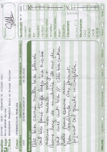 Manifestion : CACIB - Juge : Mr ARNOULT daniel