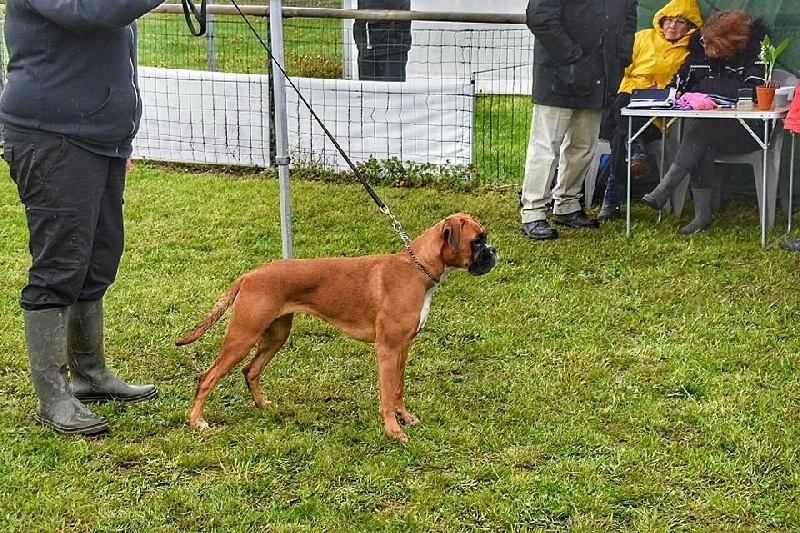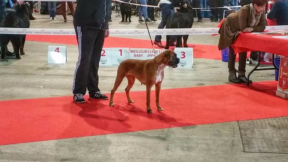 7mois1/2, sujet bien construit, belle ligne exterieur. Exc encolures. oreilles Bien incerré. Proitrine correct pour l'âge. Coude un peu ouvert. Bon caractère, super bien présenté