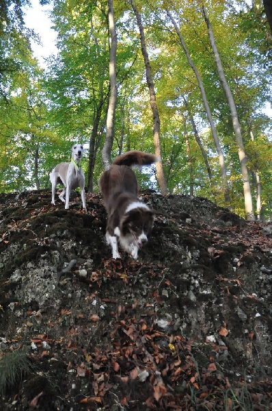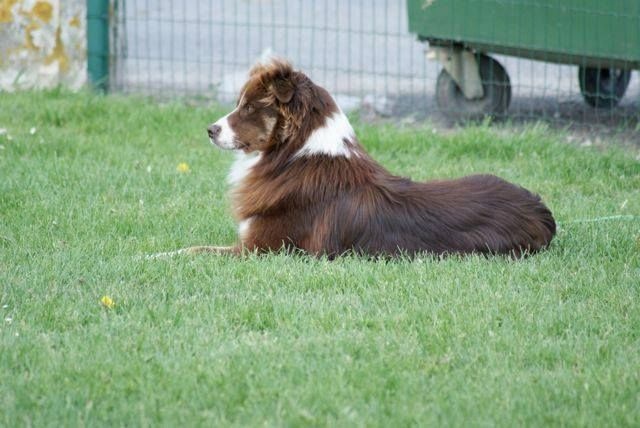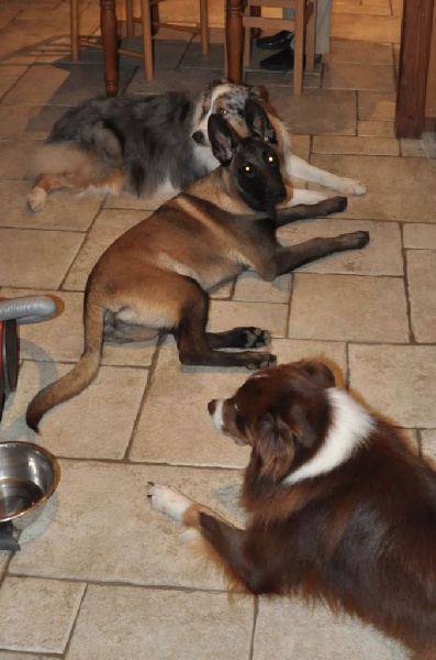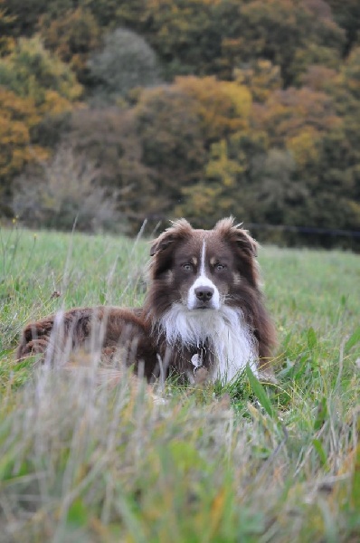 Istwood est un 100% working aussie, c'est un chien très sociable, très joueur, rapide, calme et réfléchie quand nécessaire. Il a des instincts troupeau très présents. Il a suivi pendant un peu plus de deux ans un entrainement pour la compétition en ob programme 4B en Belgique. Très performant à l'entrainement, il a cependant montré une instabilité dûe certainement à des problèmes relationnels inexpliqués avec son conducteur, ayant à deux reprises eu d'excellents résultats 1 concours avec 90/100 points et a obtenu son brevet avec 97/100 points et d'autres fois refusant de travailler en concours. Il a obtenu également avec succès son test de comportement social.Son propriétaire n'ayant pas trouvé de solution à ce problème, nous avons décidé d'un commun accord qu'Istwood reviendrait à l'élevage car c'est un chien de grande valeur avec d'excellentes qualités qui méritent d'être transmises. Il est l'un des rares représentants de ce mariage en Europe, issu des meilleures lignées travail des USA. Depuis son retour à la maison, Istwood se montre très proche de nous et câlin, c'est un vrai pot de colle. Il s'est très bien intégré au groupe chiens/chats et animaux divers. Il monte également très bien la garde. Il est sage et calme dans la maison. Je pense que la vie au chenil ne lui convenait pas.