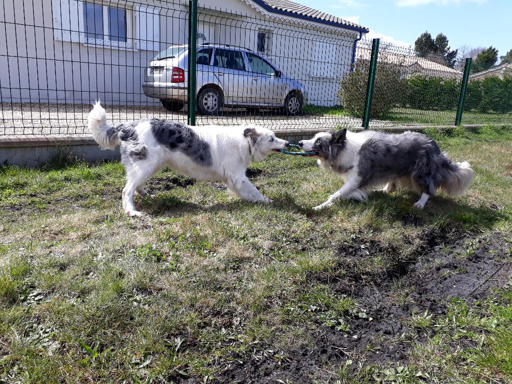 C'est une chienne qui a une grande intelligence du troupeau,elle comprend très vite ce qui doit être fait. Elle est capable d'apporter un support à un jeune chien qui démarre au troupeau en restant à distance et en intervenant uniquement si nécéssaire lorsque des brebis s'échappent.