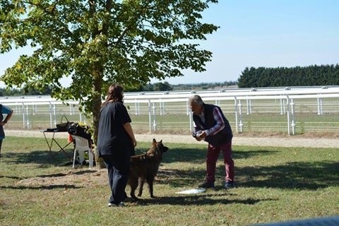 Mâle bien en fourrure, dentition ciseaux, présenté en excellente condition générale, taille dans le standard, tête masculine, chanfrein de bonne longueur, crâne de bonne largeur, très bonne ligne de tête, oreille de bonne taille, un peu large à leur base, fouet bien placé un peu juste, angulation avant arrière pourrait être un peu plus marqué, pied un peu long, doigt bien serré, ouvre un peu les antérieures, déplacement correct, excellent caractère, excellente présentation