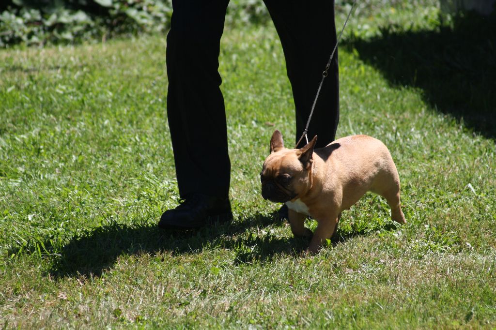 30 cm , excellent crâne ,excellent attache oreille , tête large carré , excellente forme yeux , excellent stop , profil , prognathisme , mâchoire inférieure un peu plus large , excellent poitrail , excellent antérieur pieds , excellente côte , poitrine , léger surpoids , queue vestiginale mais présente , excellent arrière main , démarche libre .