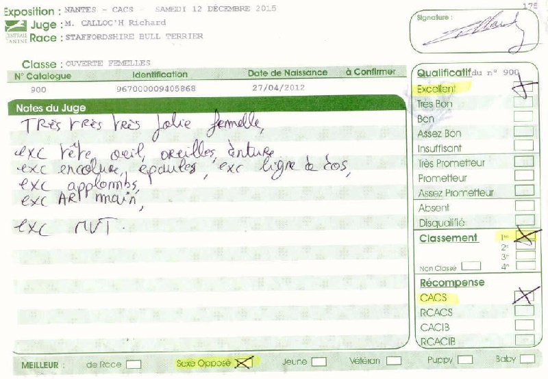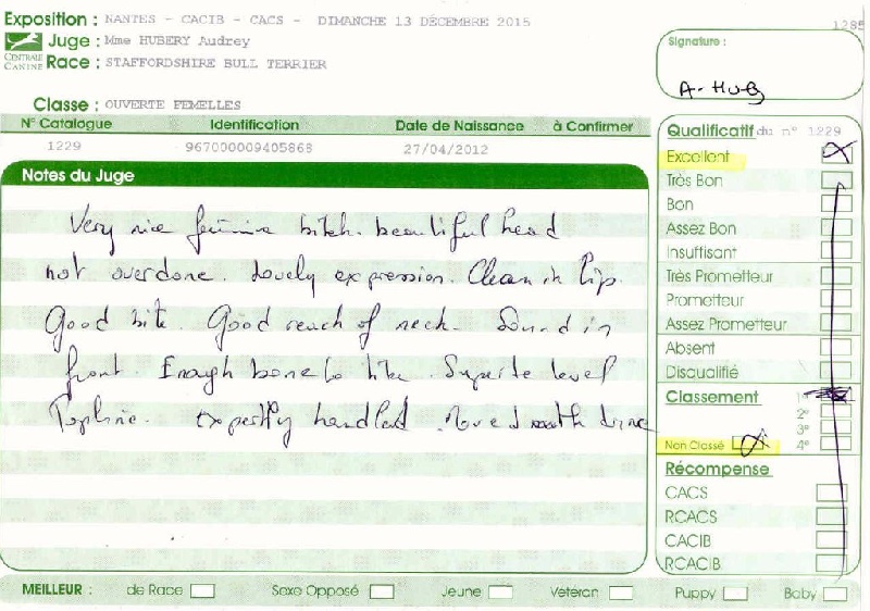 Manifestion : International Stafford Match - Juge : Mr Lothary Mr Davis Mme Bogovcic
