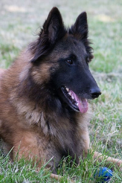 Denture Complète en Cisailles - 9 mois - grande taille - sable bien masqué - corps assez court - bonne encolure - excellents dessus et dessous - angulations minimum - belle ossature - bons aplombs - pieds de chat - tête médio longue - bel oeil sombre - stop minimum - la tête doit s'assécher et se ciseler mais a du volume - oreilles moyennes lancéolées bien portées - bonne présentation et caractère - bien masculin - jolies allures - fouet correct.