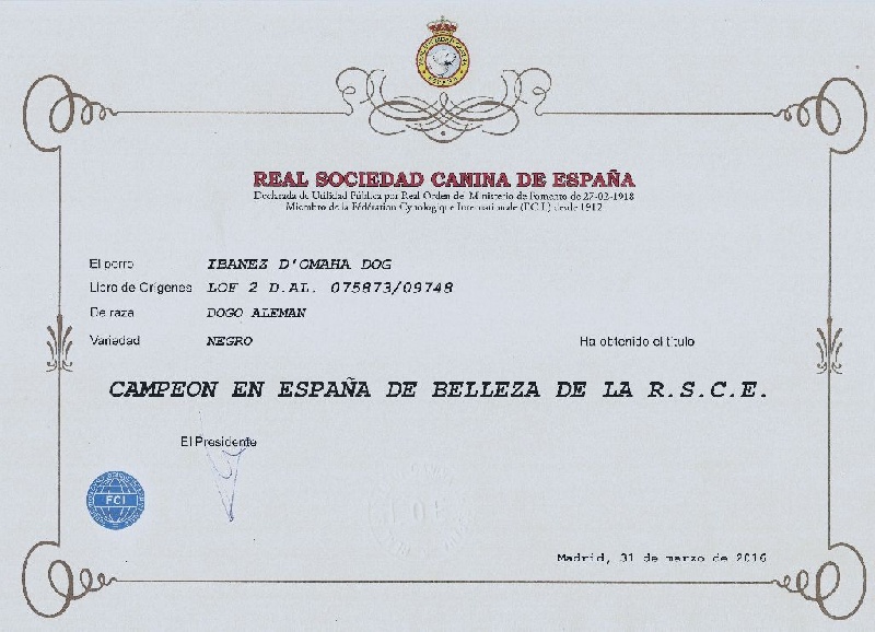 - HOMOLOGATION DU TITRE DE CHAMPION D'ESPAGNE