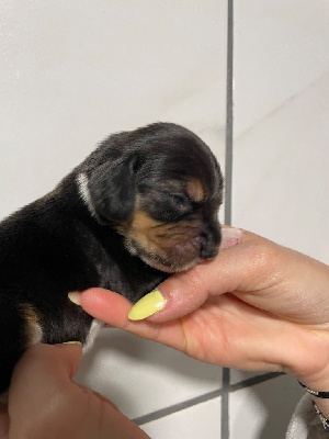 40cmdentition conforme , très bonne tête , oeuil foncé , excellente pigmentation , oreille un peu court , forte ossature , excellent pied , épaule un peut droite , fouet bien attache , très bon mouvement