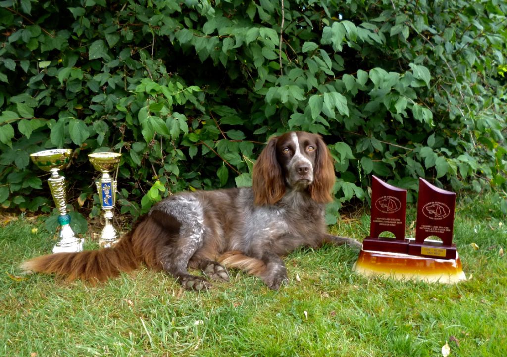 Excellent modèle d'ensemble, bien construit sur une excellente ossature. Excellente tête. L'oeil est suffisamment coloré. Excellente ligne de dos, poitrine, pieds et angulations. Excellente démarche.