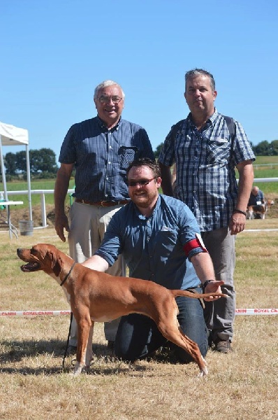 Superbe chienne bien équilibrée, caractère extra.Très jolie tête, Très belle pigmentationPieds un peu écrasésExcellente sortie d'encolure et insertion de fouet.Excellente angulations postérieures