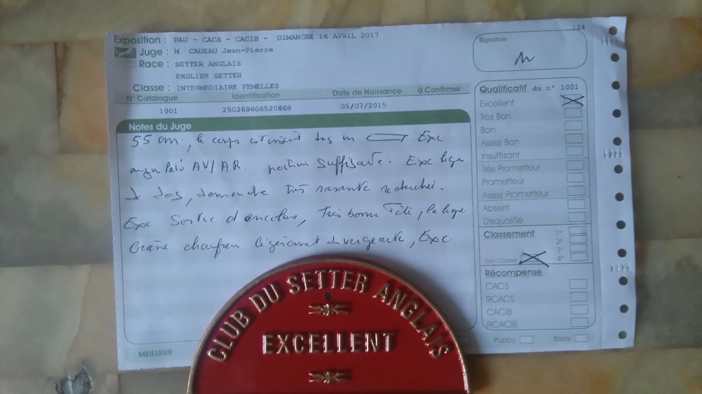55 cm - le corps est bien inscrit dans un rectangle exc angulation av/ar - poitrine suffisante exc ligne de dos - démarche très rasante recherchéeexc sortie d'encolure - très bonne tête la ligne crane chanfrein légèrement divergente - exc