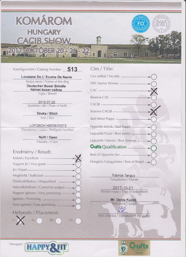 Manifestion : Exposition internationale - Juge : kuzelj Denis