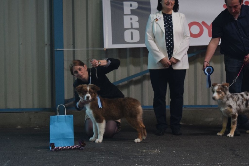 Classe Puppy femelle8 mois - sujet bien proportionné - Tb construction en tête - DCC - bon port d'oreilles - tb forme d'oeil - parallélisme correct - ligne de dos bien soutenur - tb croupe - tb angulations avant/arrière - ossature correcte - bien charpentée - tb pieds - mouvement correct - tb caractère