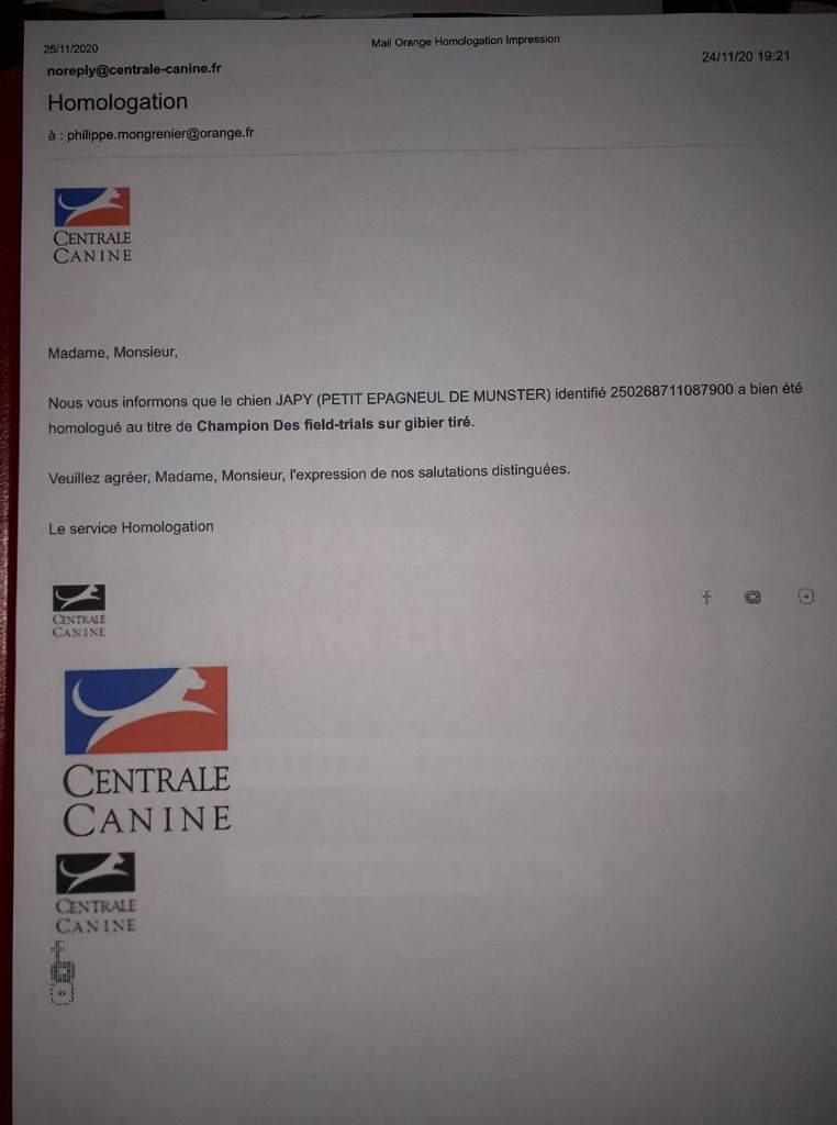 - LE TITRE DE CHAMPION DE FIELD TRIALS SUR GIBIER TIRE 2020