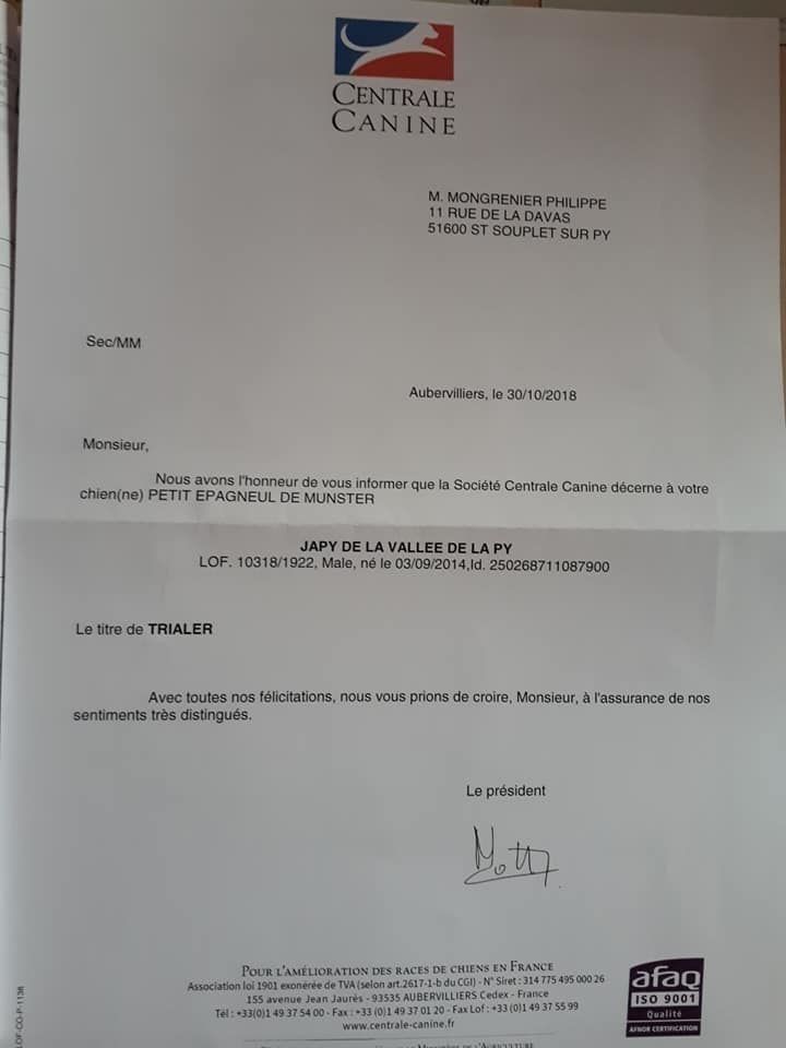 Manifestion : TAN A BELVAL - Juge : MLLE Agnès DE FRANCE