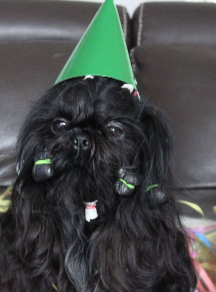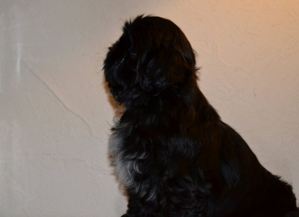 Sa belle couleur bien noire et uniforme, fait de lui un très beau spècimen de shih tzu noir.
