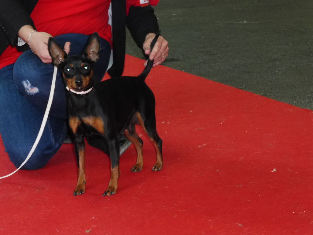 Ses résultats: 15/02/14 BOURG EN BRESSE classe puppy.juge juanchicot :Très prometteur 11/05/14 CHAROLLES Classe jeune. Juge Voilet : 1er excellent 06/09/14 DIJON classe inter. Juge Morbelli:1er très bon 06/06/15 CHAMPIONNAT DE FRANCE Classe ouverte. Juge juanchicot:4eme exc 18/03/18 MONTLUCON : classe ouverte juge Mme Lafay CACS, CACIB, Meilleure de race ; 08/04/18 Limoges Speciale de race : 2ieme excellent