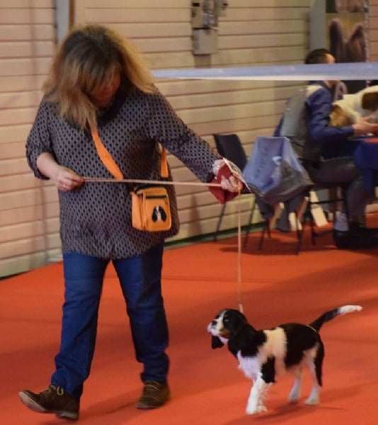 DCC , Bonne tête, Exc oeil ,Bon crâne, Bonnes oreilles , Exc épaules , dos et poitrine pour son âge , Exc antérieur et arrière main , chienne joueuse , bon fouet , démarche juvénile