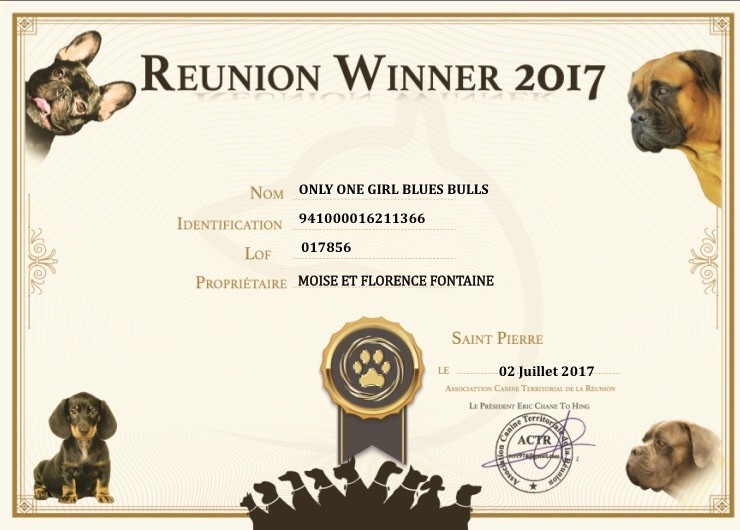 janvier 2016 : 1ère exc. classe jeune femelle (NE Tampon) juge Mr SOULAT Raymond