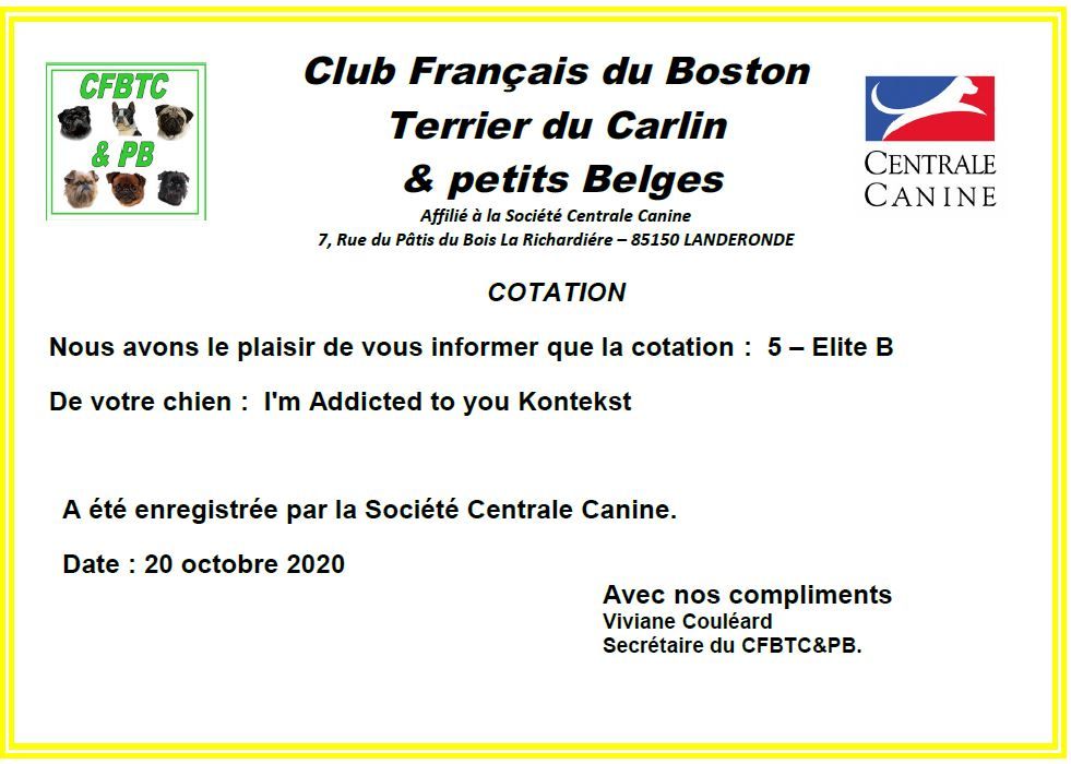 Voila ma Jaïa, c est pour toiLa reconnaissance du club de race du Boston Terrier, la COTATION 5 - ELITE BLa reconnaissance de tes bébés qui te succèdent avec succèsMoi Eros de L'Esprit du Chien, Cotation 3Ode à L'Amour de L'Esprit du Chien, Cotation 3Out of Control de L'Esprit du Chien, Cotation 3La reconnaissance de ta maman avec qui tu as partagé des moments d'émotions si fortTu es une chienne exceptionnelle, joueuse, intelligente, toujours a l'écoute de ce que ta maman te demandeDepuis l'an dernier tu es a la retraite car tu m'a tant donnerTu as été une maman d'exception, une tatie , une mamie, avec toi les bébés de l'Esprit du chien apprennent à échanger, à jouer, tu les stimules comme tu es la seule à le faireJe t'aime mère Jaïa