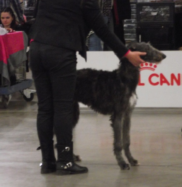 Lion Heart serait-il mon parfait Deerhound ? Il a pratiquement toutes les qualités requises qu'un éleveur chercherait dans la race du Deerhound. Il est d'une qualité exceptionnelle à tout point de vue (tempérament et morphologie). Il est d'une bonté extraordinaire, ce qui caractérise vraiment la race du Deerhound. Il est extrêmement doux et gentil avec un soupçon d'espièglerie. Il aime faire plaisir et être admiré. Il est très intelligent et a un excellent comportement hiérarchique envers Indiana Jones qui est son ainé de plus de 2 ans. Il a très bon appétit. Il est d'un flegme So British, mais il reste très protecteur envers sa famille, son territoire et réservé vis à vis des membres étrangers. Lion Heart est un mâle de grande taille combinant la puissance, la vitesse, l'endurance et l'élégance. Il aura une maturité physique lente dû à sa stature. Son mouvement est facile, actif et naturel. Il a une allure avec de longues enjambées et son mouvement naturel est inné. La structure de sa tête est d'une qualité exceptionnelle et sa morphologie corporelle est digne des courbes de lévrier. Lion Heart a une stature imposante et majestueuse pour son jeune âge (2 ans), c'est à dire très puissante et incroyablement gracieuse avec une humeur remplie de gentilesse et de tendresse. Il a un instinct de la chasse prononcé à celui d'Indiana Jones. Ses pieds sont parfaitement compacts avec d'excellentes jointures, ce qui lui donne une aisance dans sa course à grande vitesse. Sa poitrine est haute et bien développée ; reins bien voussés avec des grassets bien angulés; petites oreilles fines, attachées haut et repliées. Les mâchoires sont fortes et présentent un articulé en ciseaux parfait et complet. Son encolure est forte et de bonne longueur. Son poil est de qualité. Sa tête est longue et subtantielle, yeux foncés, excellentes pigmentations du bord des paupières, queue longue. Mon mari est totalement admiratif de lui par sa beauté intérieure et extérieure. Par manque de disponibilité, j'aurais aimé le montrer régulièrement en exposition canine, car c'est un excellent sujet (2017). Ce prince charmant aime se faire toiletter. A presque 4 ans (2019), il a acquis sa maturité psychologique et morphologique. Lion Heart est doté d'un immense courage, d'un esprit d'équité, d'une extrême bonté et gentillesse. Il est d'un caractère sûr et aimant. Il a su s'imposer hiérarchiquement devant son aîné âgé de 6 ans, et les relations entre-eux sont de bonnes convenances et d'intelligences.