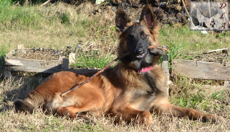 Chien Berger Belge Link (collier mauve) des loups d'antan