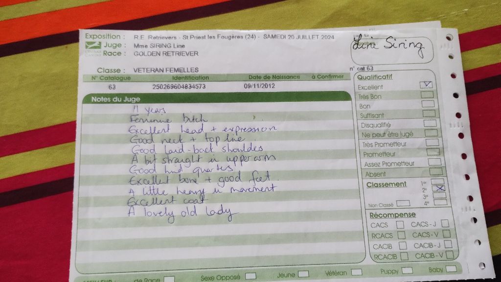 - 1ère excellent, CACS Véteran et Meilleur vétéran