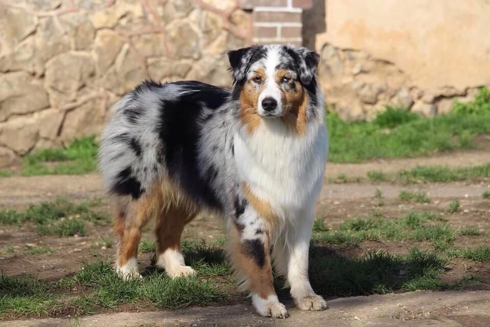 Bleu merle, excellent phénotypeDCC, jolie tête féminine expressiveExcellent dessus, dessous, aplombs, angulations, piedsExcellent démarcheExcellentes allures faciles et régulières