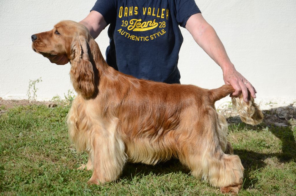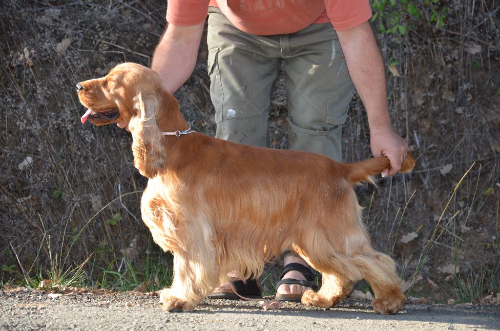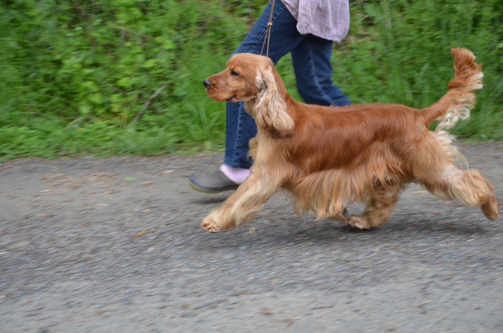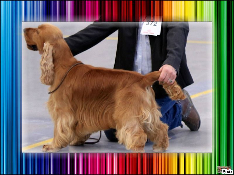Oeil parait oreilles bien attachées exc longueures DCC exc encolure dessus angulations arrières et applombs exc épaule poitrine ample bien développée présenté en exc condition exc mouvement et applombs