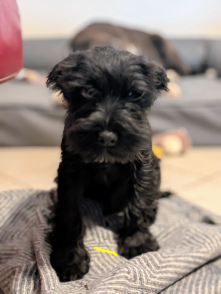 Chiots Schnauzer miniature CHIOT 2 collier jaune des Pitchoucas de Lacapelette