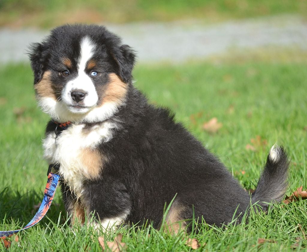 Chiots Berger Américain Miniature Collier vert AVANE des Wani - Yanpi