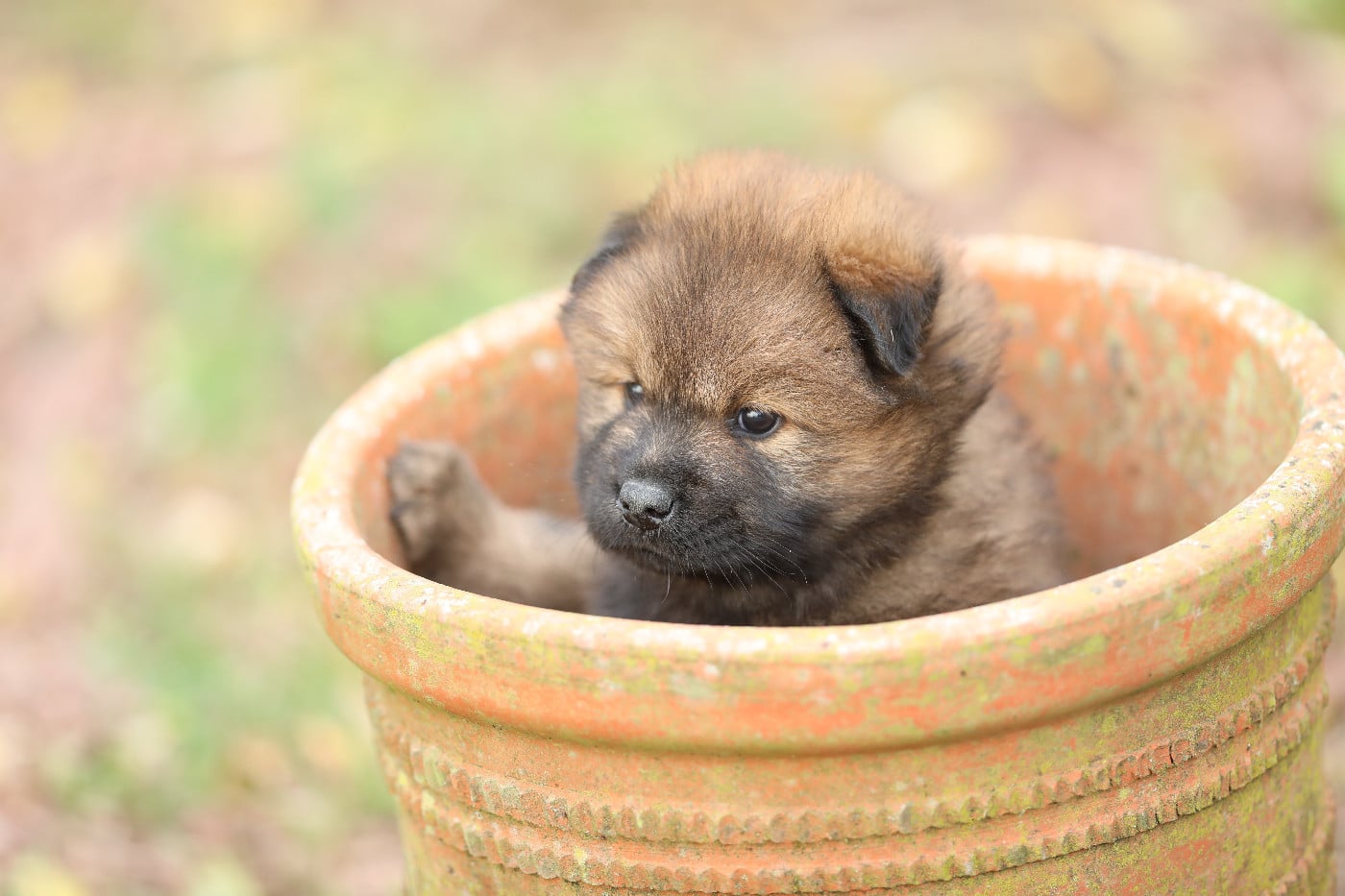 Chiots Eurasier ATTANE (collier bleu) de l'Orée du Serpentout