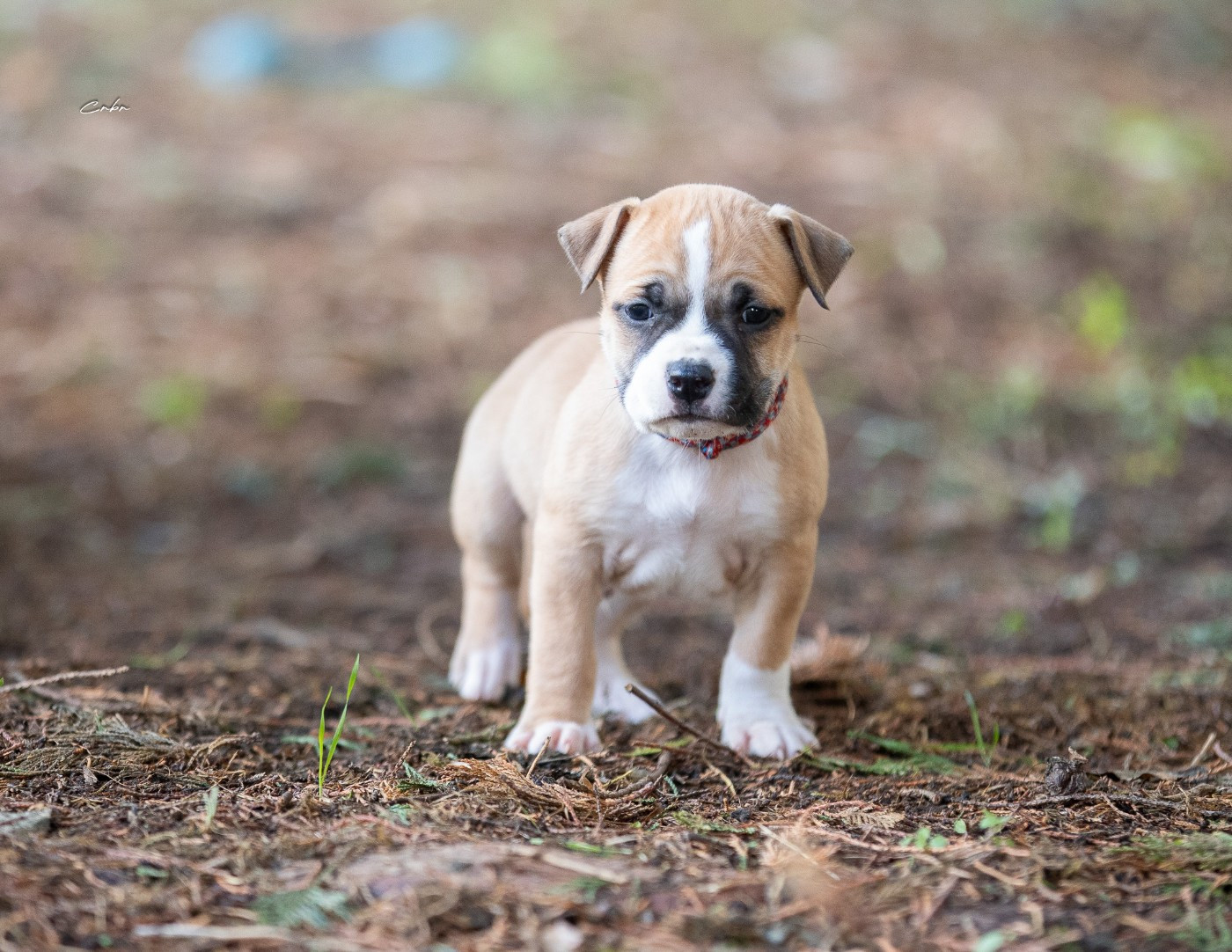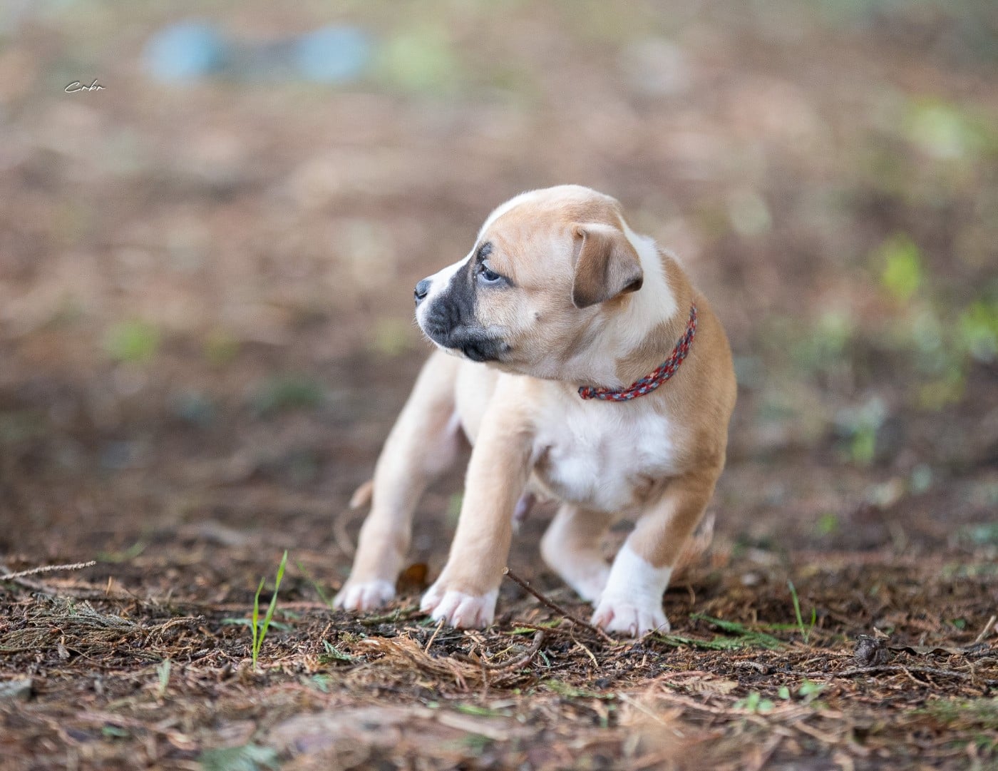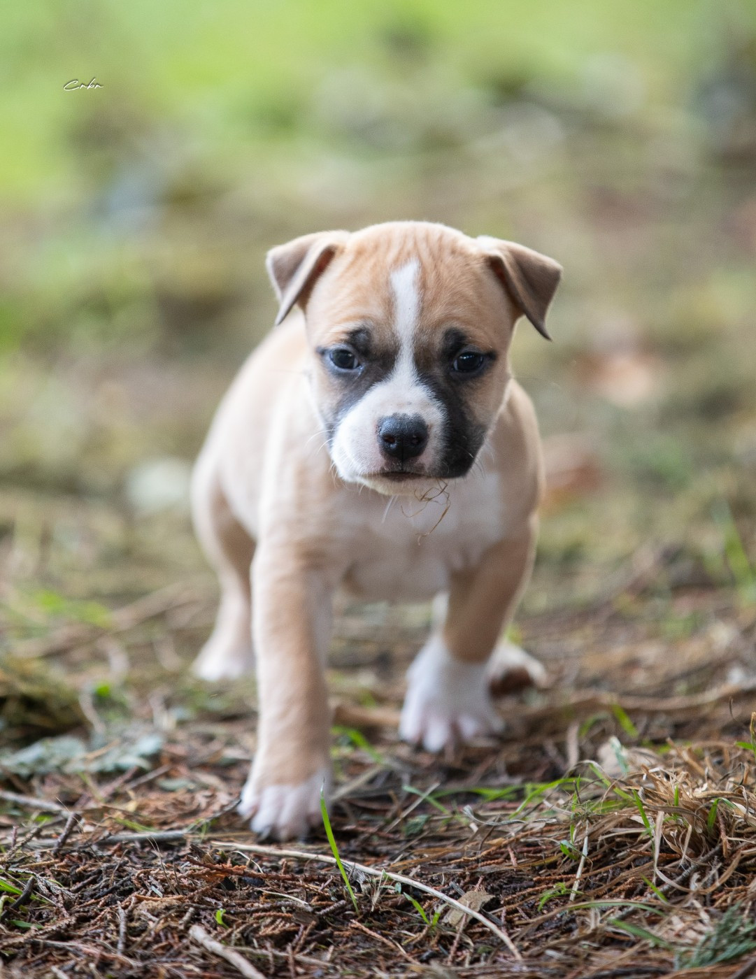 Chiots American Staffordshire Terrier Mâle collier bleu rouge Du chemin des moulins