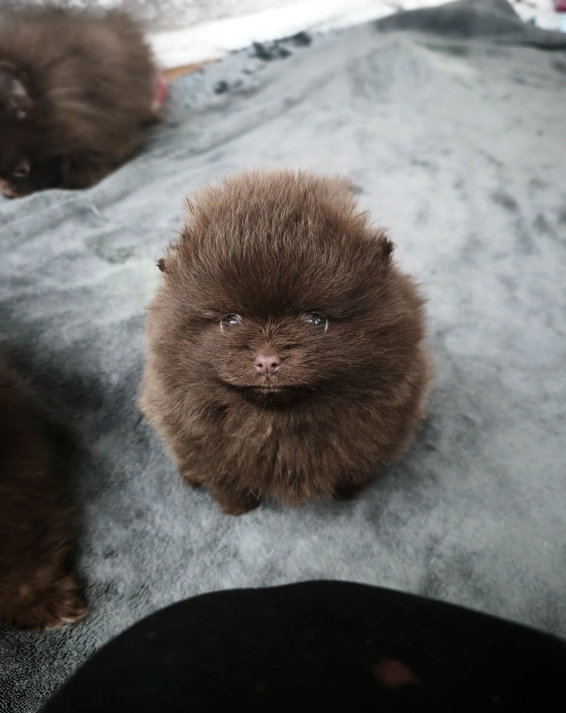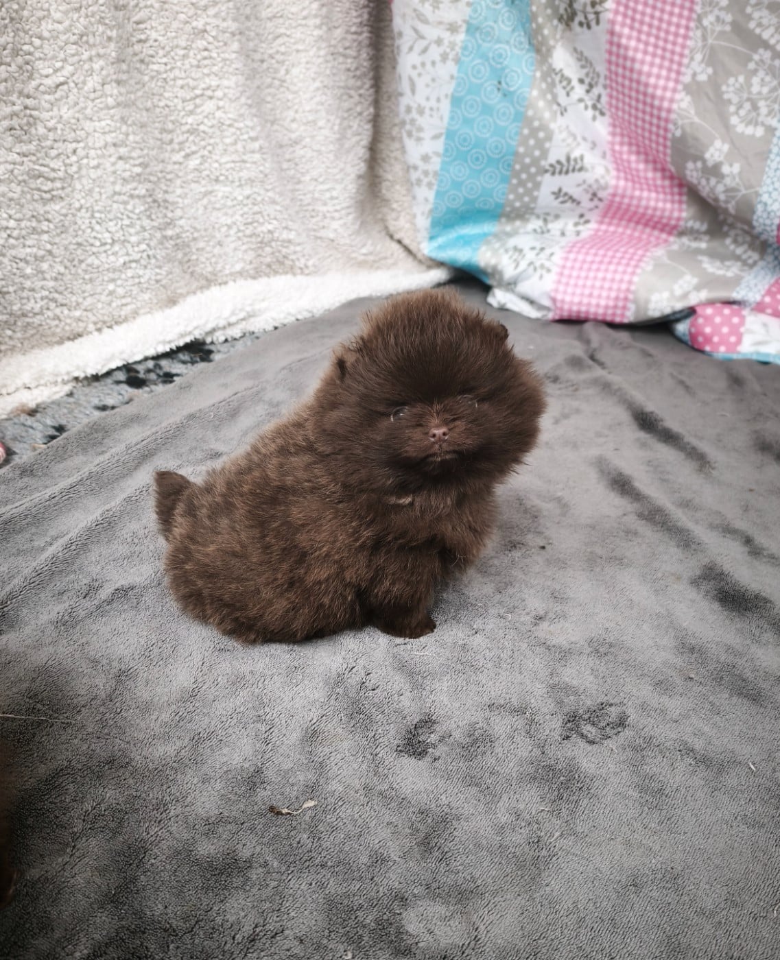 Chiots Spitz allemand Mâle chocolat (Praline) De La Beauté Française