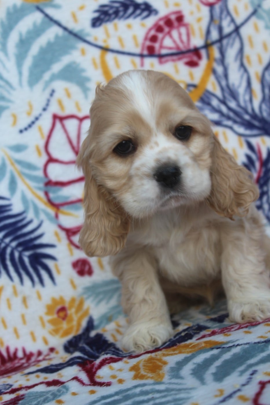 Chiots American Cocker Spaniel MALE BLOND (collier blanc) of caniland's dream
